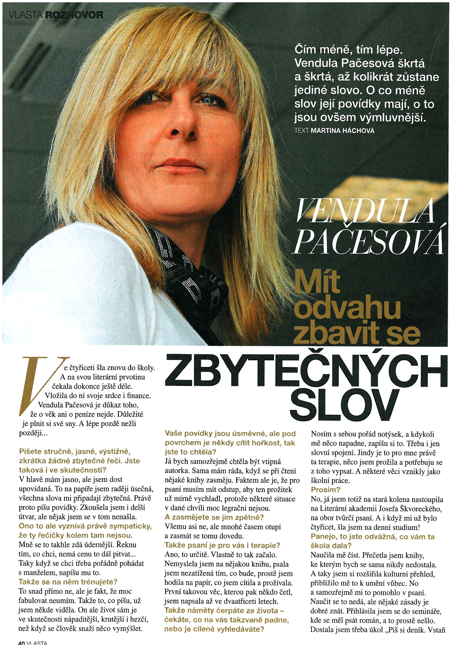 Objevila jsem svoje jméno na stránkách jakéhosi klubu překlepů. Internetoví prodavači knih na mě lákají slovy Radky Denemarkové: Vendula Pačesová píše, jako dýchá…. Je mistrem zkratky a malé plochy…. Někde se objevilo: … Je mistrem zkratky a malé pochvy…